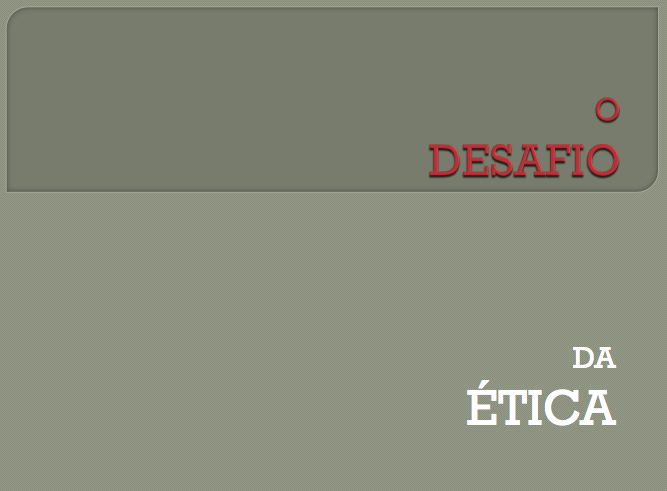 É por essa razão que, em vez de desafiar você a posar sem maquiagem, ou tomar banho gelado ou outro desafio qualquer, resolvi desafiá-lo a descobrir todas as pequenas coisas nas quais você age anti eticamente e começar a corrigi-las. Está aí um desafio que vale a pena ser enfrentado e compartilhado. Convoque seus amigos, vamos iniciar uma mudança real no País, a partir de cada cidadão. Não precisamos de governo ou qualquer outra autoridade para isso. O poder está nas nossas mãos!